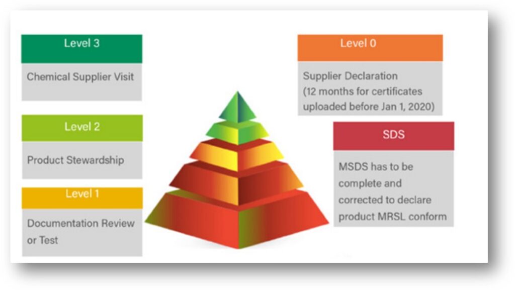 Level 1: Analytical testing, supported screening and SDS review of relevant MRSL substances information.