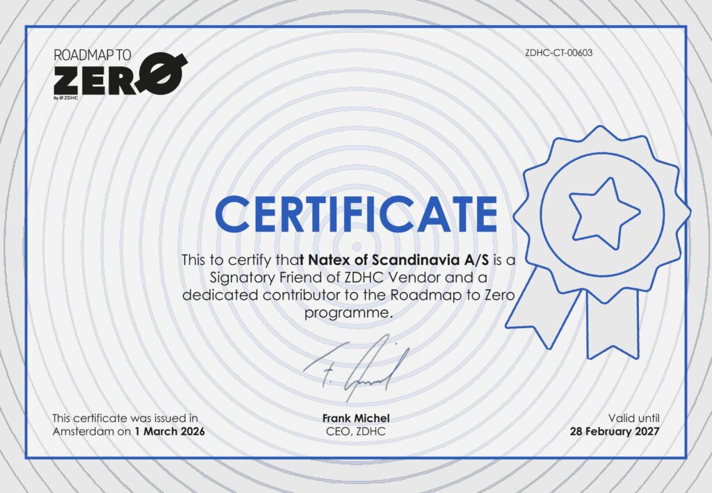 At Natex, we are dedicated to using sustainable chemicals and ensuring environmental responsibility across our supply chain. As part of our commitment to the Zero Discharge of Hazardous Chemicals (ZDHC) framework, we have set clear goals to enhance chemical safety and wastewater management.
